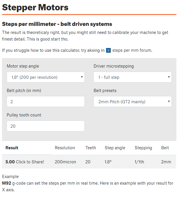 스테핑 모터 벨트 방식 거리 계산해주는 홈페이지
